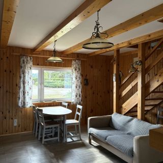 Do dyspozycji gości jest przestronny salon z kominkiem, w pełni wyposażona kuchnia, łazienka oraz dodatkowa, osobna toaleta. W kuchni znajduje się płyta grzejna, lodówka, kuchenka mikrofalowa, czajnik oraz niezbędne akcesoria kuchenne. W całym domu zainstalowano ogrzewanie podłogowe, a na wyposażeniu jest także telewizor LCD, żelazko i suszarka do włosów.