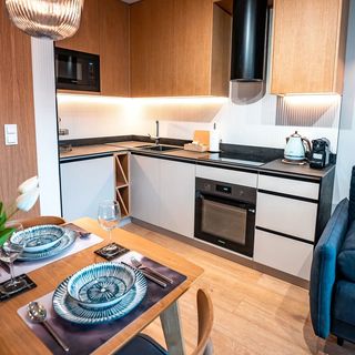 Wszystkie apartamenty są w pełni przygotowane do samodzielnego pobytu. Goście mają do dyspozycji aneksy kuchenne wyposażone w płytę grzejną, lodówkę, zmywarkę, kuchenkę mikrofalową oraz komplet niezbędnych akcesoriów do gotowania. Standardem jest również dostęp do bezprzewodowego internetu, telewizor, a także pralka, suszarka do ubrań i deska do prasowania, co ułatwia organizację dłuższych pobytów.