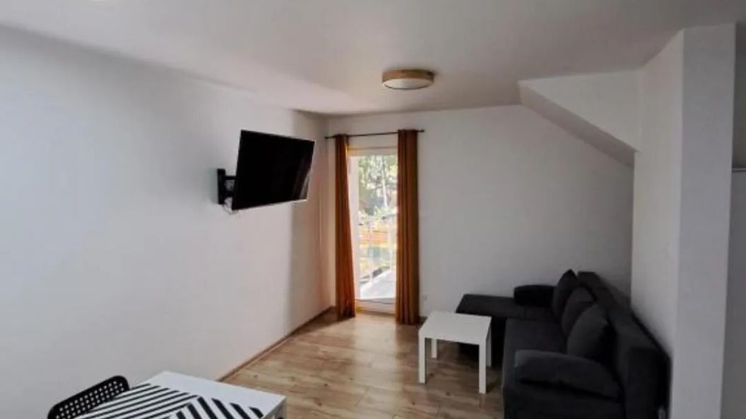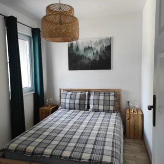 Do dyspozycji gości jest apartament dla 4 osób, usytuowany na piętrze budynku, z którego okien roztacza się widok na park. Przestrzeń mieszkalna została funkcjonalnie podzielona na dwa oddzielne pomieszczenia sypialniane, co zapewnia prywatność i komfortowy wypoczynek. Wnętrze wyposażono w telewizor Smart TV, a uzupełnieniem jest aneks kuchenny z płytą grzejną, lodówką, czajnikiem elektrycznym oraz kompletem akcesoriów kuchennych.