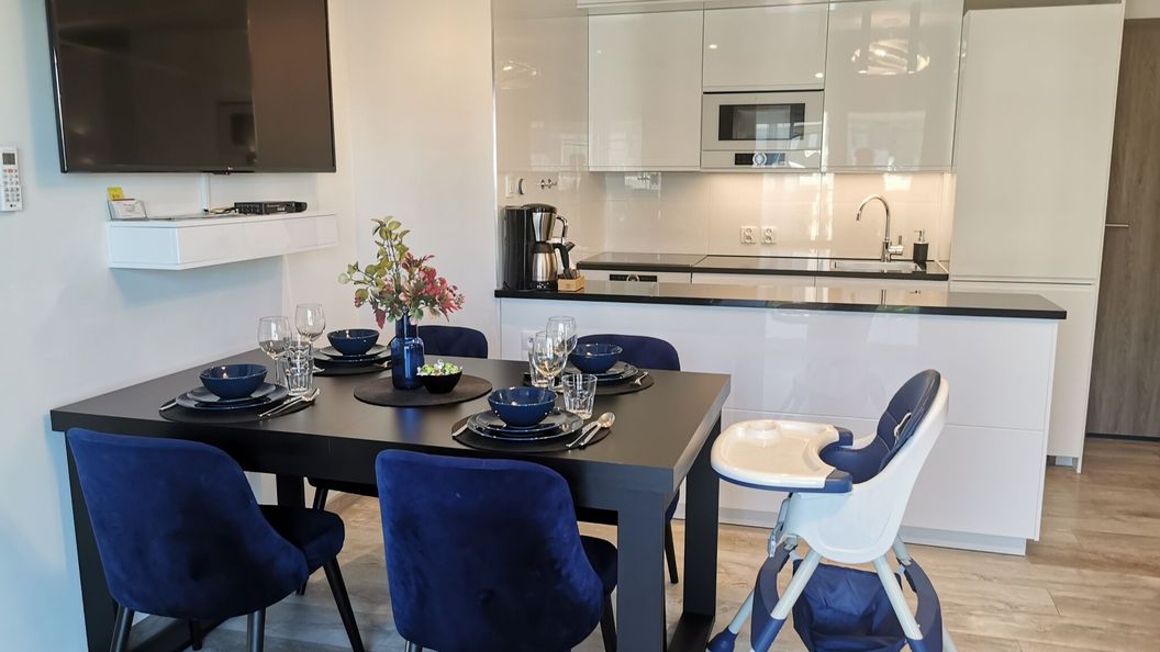 Oferta apartamentu obejmuje 2 sypialnie, salon, kuchnię z pełnym wyposażeniem, w tym lodówką i ekspresem do kawy, a także łazienkę z prysznicem oraz suszarką do włosów. W apartamencie zapewniono ręczniki i pościel.