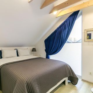 Domki noclegowe Niechorze prezentują wysoki standard wypoczynku. Nowoczesny prysznic bezprogowy, elektryczna suszarka na ręczniki czy suszarka do włosów z której panie za pewne będą zachwycone, to tylko przykłady udogodnień. Piętro stanowi sypialnianą część Domku Idealnego. Dwie duże sypialnie wyposażone zostały w wygodne łóżka. W jednej spore podwójne łóżko a w drugiej równie wygodne dwa pojedyncze łóżka. Standardowo na każde przysługuje komplet pościeli. W sypialniach znajdują się też szafy z wieszakami pozwalające wypakować swoje bagaże, a przy łóżkach szafki nocne na przechowanie rzeczy osobistych podczas snu.