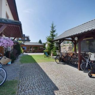 W ośrodku można wypożyczyć rowery nieodpłatnie Miejsca na wieczorne pogaduchy oraz salka z bilardem i piłkarzykami Pokoje czyste z aneksami kuchennymi Państwo tolerują małe zwierzaki Polecam ten ośrodek myślę że jeszcze nie raz tam zajrzę