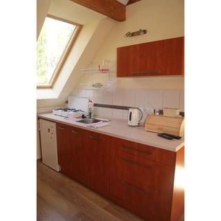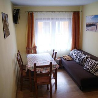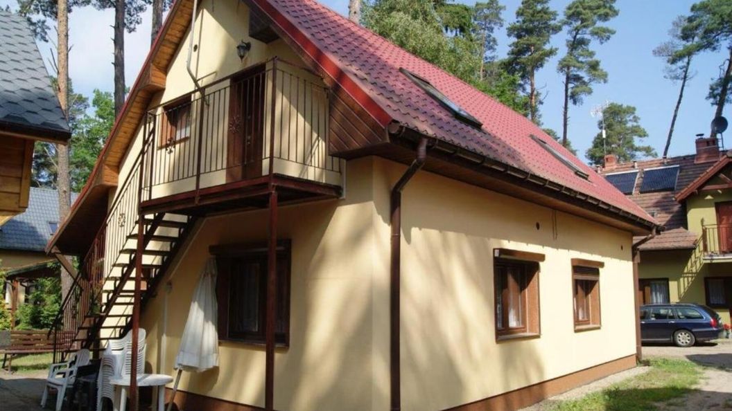 Budynek składa się z czterech lokali: dwóch na parterze i dwóch na piętrze. Lokale na parterze Studio- 5 osobowe - składają się z 2 pokoi (3 i 2 osobowych), kuchni i łazienki oraz werandy, lokale na piętrze - 4-5 osobowe - składają się z dużego pokoju z aneksem kuchennym i łazienki oraz małego tarasu. W każdym lokalu znajduję się telewizor 32" z telewizją satelitarną oraz internet WI-FI. Pokoje są bardzo przytulne i funkcjonalne. Aneksy kuchenne są wyposażone w kuchenkę gazową, lodówkę, czajnik elektryczny i naczynia codziennego użytku, dzięki którym jest możliwe przygotowanie posiłków. Przy budynku jest zjeżdżalnia i huśtawka.