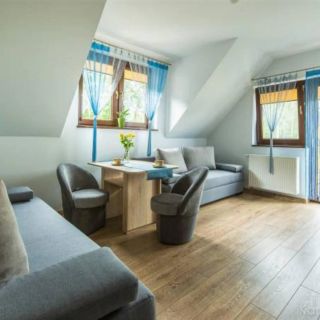 W nowo wybudowanym, monitorowanym budynku przygotowano pokoje 2-, 3- i 4-osobowe oraz 5-osobowy apartament. Każdy z nich posiada własną łazienkę, balkon, lodówkę i telewizor. Dla wszystkich gości zakwaterowanych w tej części obiektu udostępniono także wspólny, w pełni wyposażony aneks kuchenny.