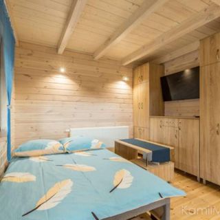 2 komfortowe domki drewniane ,8 osobowe , w pełni wyposażone z dwiema sypialniami na górze.