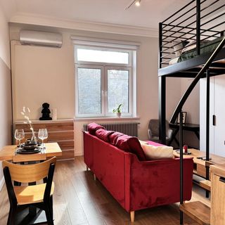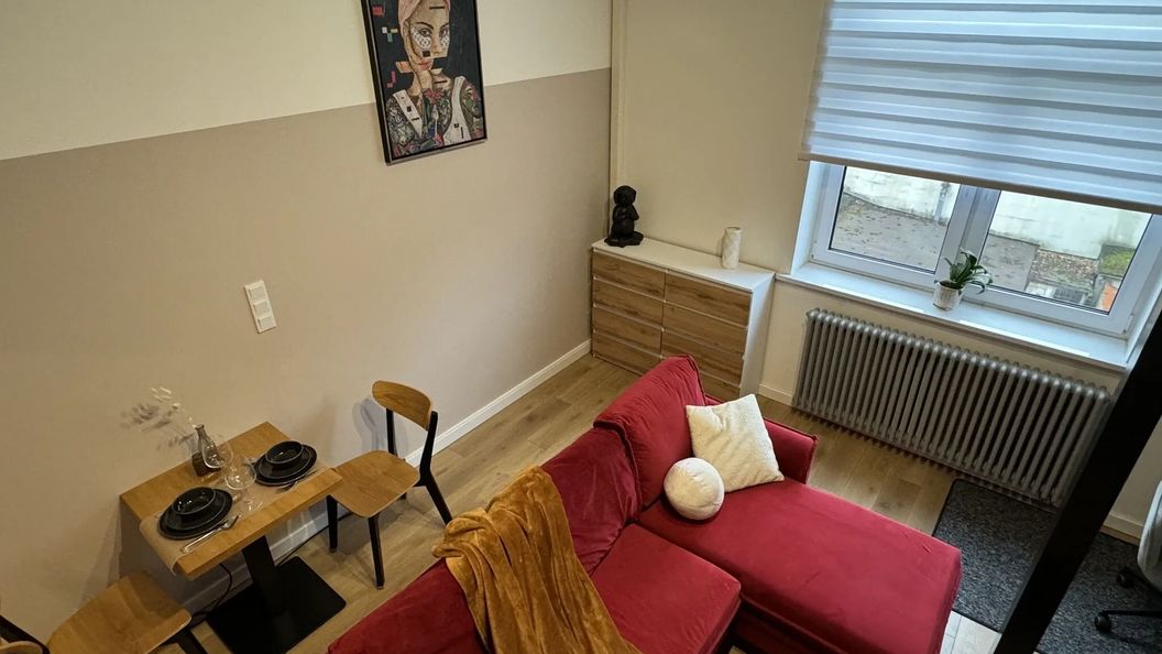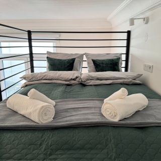 Do dyspozycji gości jest apartament typu studio o powierzchni 30 m², przeznaczony dla maksymalnie 4 osób. Przestrzeń została funkcjonalnie zaaranżowana, a jej charakterystycznym elementem jest antresola. Miejsca do spania obejmują dwuosobowe łóżko na antresoli oraz rozkładaną, 2-osobową sofę w części dziennej. Taki układ zapewnia oddzielenie strefy sypialnej od salonu.