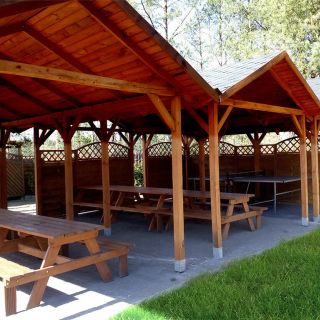 Oferta noclegowa obejmuje dwa rodzaje domków. Większe, przeznaczone dla maksymalnie 6 osób, zostały wykonane z drewna i posiadają charakterystyczny taras z antresolą, idealny do wieczornego relaksu. Dostępny jest również mniejszy, kameralny domek dla 2 osób, w którym istnieje możliwość przygotowania dostawki.