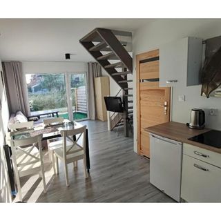 Oferta obejmuje cztery 6-osobowe domki letniskowe. Każdy z nich to dwupoziomowa przestrzeń z osobnym wejściem, co gwarantuje prywatność. Na parterze znajduje się salon z częścią jadalnianą, w pełni wyposażony aneks kuchenny oraz łazienka z prysznicem. Piętro zajmują dwie oddzielne sypialnie.