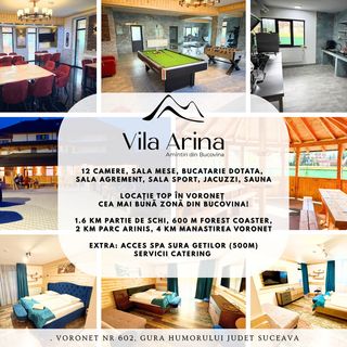 Vila Arina to nowoczesny obiekt noclegowy położony na początku miejscowości Voroneț, przy ulicy Pârtiei, w jednej z najlepszych turystycznych lokalizacji Gura Humorului – Voroneț.