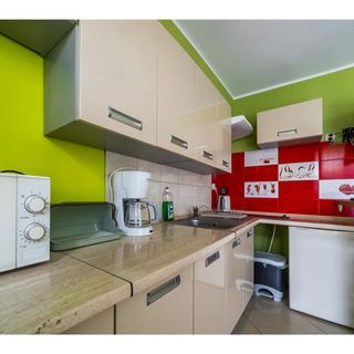 W apartamencie znajduje się w pełni wyposażony aneks kuchenny, który umożliwia samodzielne przygotowywanie posiłków. Znajdują się w nim płyta grzejna, lodówka, kuchenka mikrofalowa, a także czajnik, zaparzacz do kawy oraz komplet naczyń i garnków. W prywatnej łazience goście znajdą kabinę prysznicową i pralkę.