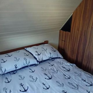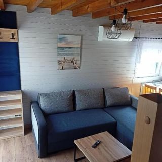 Oferta obejmuje komfortowy, drewniany domek dla 8 osób. Jego przestrzeń została funkcjonalnie zaaranżowana, aby zapewnić wygodę pobytu większej grupie lub rodzinie. Wewnątrz znajdują się dwie oddzielne sypialnie, przestronny salon z telewizorem z płaskim ekranem, stanowiący centrum życia dziennego, oraz łazienka wyposażona w prysznic. Obiekt zapewnia gościom komplet pościeli i ręczników.
