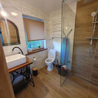 Wnętrze apartamentu obejmuje aneks kuchenny wyposażony w lodówkę, płytę grzejną, kuchenkę mikrofalową oraz czajnik i niezbędne akcesoria do gotowania. Goście mają również do dyspozycji łazienkę, a w części wypoczynkowej znajduje się telewizor Smart TV. W całym obiekcie zapewniono dostęp do internetu.