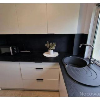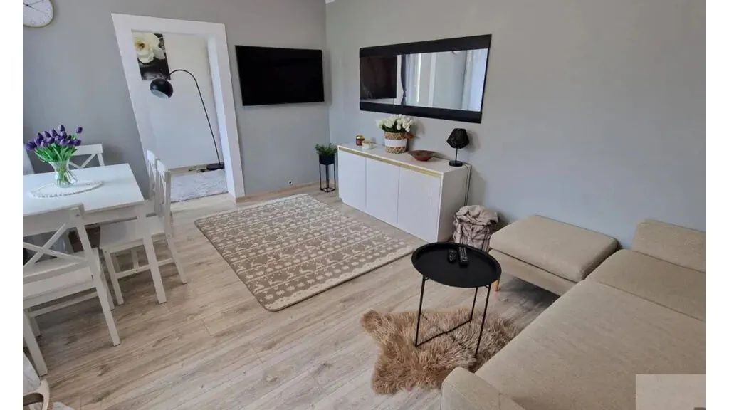 Oferta obejmuje samodzielny apartament o powierzchni 40 m², usytuowany na parterze budynku, co zapewnia wygodne wejście bez konieczności korzystania ze schodów. Wnętrze składa się z salonu z rozkładaną sofą oraz oddzielnej sypialni, tworząc funkcjonalną przestrzeń dla maksymalnie 3 osób. Jego układ, z oddzieloną częścią dzienną i sypialnianą, zapewnia komfortowy wypoczynek, a całość uzupełnia prywatna łazienka z prysznicem.