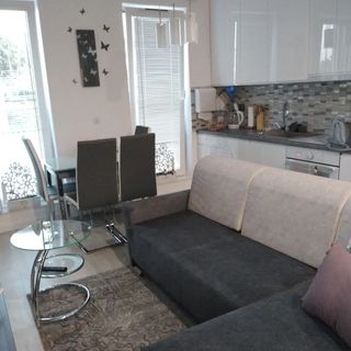 Apartament "Marzanna" II jest jedynym naszym obiektem. Przy jego tworzeniu kierowaliśmy się wszystkimi opinia Naszych gości. Znajduje się on na pierwszym piętrze nowoczesnego bloku, wyposażonego zarówno w windę jak i garaż podziemny. Składa się on z salonu, aneksu kuchennego, łazienki oraz oddzielnej sypialni. Nasi goście mogą również korzystać z balkonu. Nasz Apartament zapewnia Gościom komfort, pełną prywatność, a także swobodę w czasie pobytu.
