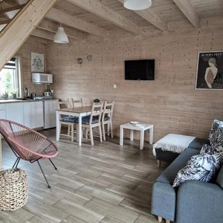 Zapraszamy do nowo wybudowanych, przestronnych, wolno stojących domków drewnianych, zlokalizowanych w miejscowości Jantar, przeznaczonych do wypoczynku dla 6-8 osób.