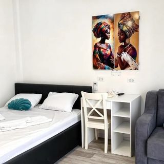 Niektóre pokoje w apartamencie posiadają balkon lub taras, gdzie możesz się cieszyć miłym wieczorem na świeżym powietrzu. Dzięki klimatyzacji działającej w każdym pokoju, możesz się łatwo odświeżyć podczas ciepłych letnich dni. We wszystkich pokojach znajduje się osobna łazienka i toaleta.