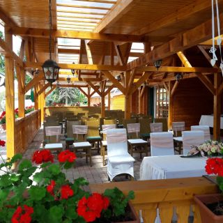 Na terenie hotelu działa restauracja z zadaszonym tarasem, serwująca dania kuchni węgierskiej, regionalnej i tradycyjnej. Goście mogą skorzystać z opcji pełnego wyżywienia, śniadań i obiadokolacji lub zamawiać potrawy z karty. Restauracja przygotowuje również posiłki dla osób na dietach specjalnych, w tym bezglutenowej, bezlaktozowej i wegetariańskiej, a także oferuje menu dla dzieci.