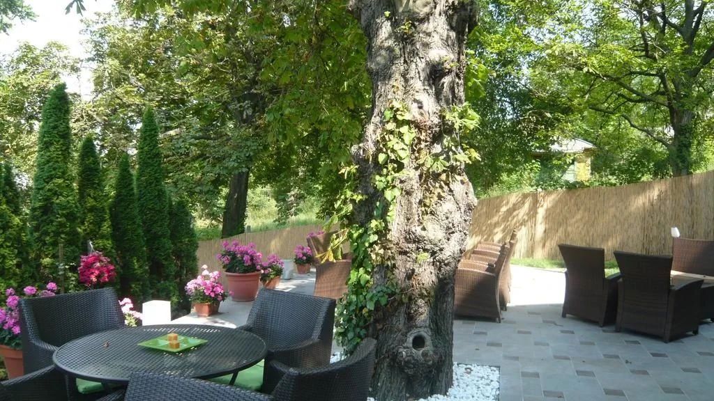 W ogrodzie hotelu nasi goście mogą korzystać z wyjątkowego klimatu i świeżego powietrza z pobliskiego wzgórza.