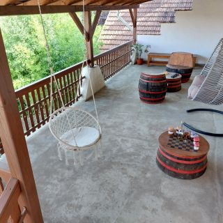 Nagyon jó ötlet volt a medence! Minden nap úszkáltunk egy kicsit, de annyira szuper időjárást fogtunk ki, hogy egy teljes napot is rászántunk a fürdésre, napozásra. Ebédre a szalonnasütőben raktunk tüzet és a nyársakon megsütöttük grillkolbászainkat. A teraszos borozgatások közepette lesétáltunk a játékterembe, ahol dartsoztunk, pingpongoztunk, csocsóztunk. A házigazda néni nagyon kedves volt: körbevezetett bennünket a Zakatorban, mesélt vég nélkül a faluról, a szálláshelyről, a szállás alatt húzódó pincerendszerről. Végül "csak" pálinkakóstolót kaptunk, mert elmondtuk, hogy másnap megyünk pincelátogatásra és bortúrára, így a néni úgy gondolta, hogy bort majd igyunk ott.🤣🤣 A wifi használhatatlan volt. Rengeteg darázs volt, bár mindenütt számtalan darázsirtó spray volt kirakva, amiket lehetett használni. A klíma az éjszaka közepén egyszer csak bekapcsol hatalmas zajjal - nem biztos, hogy minden esetben jó az automata rendszer. Kár, hogy csak a felső szinten van fekvő hely, azaz opcionálisan sem lehetett alsó szobát választani - egy térdtörés után elég rossz volt le-föl járkálni a lépcsőn wc-re, hűtőhöz és úgy egyébként mindenért.