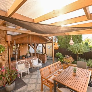 Do apartamentowca przynależy wspólny ogród z wiszącymi huśtawkami, sprzętem do grillowania i gotowania, z którego mogą korzystać wszyscy goście.