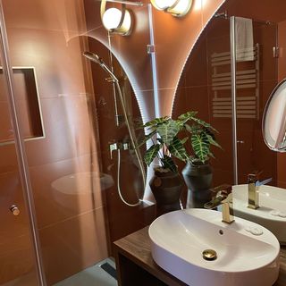 (Nem annyira negatív tapasztalat, inkább csak esztétikai kivetnivaló volt számunkra a fürdőszoba kialakítása. Nekünk kicsit furcsa volt a zuhany ajtó/függöny nélkül.)