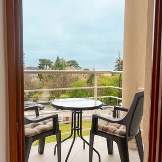 sierpień 2023Kellemes környezetben, csendes utcában található a barátságos, családias szállás. Könnyen megközelíthető, van hely az autónak, tágas, tiszta szobát kaptunk, szép, tiszta erkéllyel és szintén tiszta fürdőszobával. Volt szekrény a ruháknak, asztal és székek a kényelmes társalgáshoz, hűtő és egy kis konyha az ételek készítéséhez. Az erkélyen kényelmesen lehetett reggelizni és élvezni a kilátást. A szomszéd erkélyrésztől nincs semmilyen elválasztás, de egy nagyon kedves úrral pihentünk az erkélyen, szóval jó volt az élmény! A kerékpárunkat a garázsban tárolhattuk, tényleg nagyon kedves volt a személyzet! A csendes, nyugodt környezetben, nagyon kényelmes ágyon remek volt a pihenés. Eleinte sajnáltam, hogy nincs szúnyogháló, de nem találkoztunk szúnyoggal, így nem számított egyáltalán:)