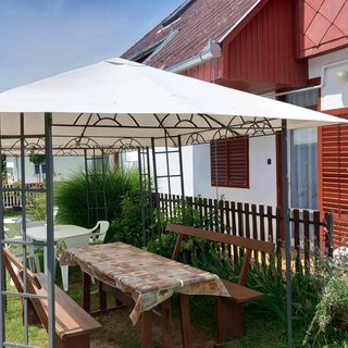 3 duże sypialnie, kuchnia, 1 łazienka, 1 WC, 2 tarasy z zestawem mebli ogrodowych, TV kablowa i podwórko. Zaciszne, spokojne otoczenie. Blisko do wybrzeża: plaża - 450 m; sklepy - 450 m; restauracja - 200 m; autostrada 4 km. Lotnisko Sármellék 15 km. W pobliżu kąpieliska termalne: Hévíz, Marcali, Zalakaros, Kehidakustány. Możliwości wycieczkowe:Keszthely, Kis-Balaton (Mały Balaton), Szigliget, Badacsony, Tapolca, Sümeg.