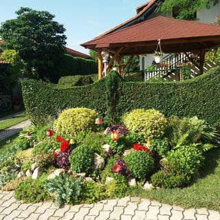 sierpień 2022• Nagyon szépen gondozott, virágos, díszkertes porta.