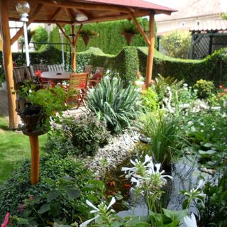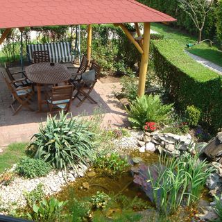 Csodálatos kertje van, tele virággal és hangulatos zugokkal, egyszerűen pihentető volt kiülni a kertbe egy kicsit, nem beszélve a kerti tavacska melletti reggelikről. Imádtuk!