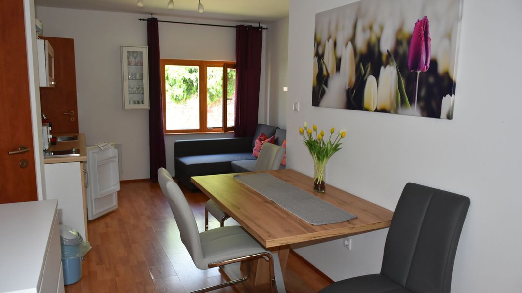 Sajnos nagy csalódás volt a szállás, amit leginkább az okozott, hogy nem volt tiszta és a kényelmetlen ágy (a lapockámat nyomták a rugók, olyannyira kifeküdt). Röviden: penészes zuhanyzó, penészes hűtő, penészes fakanál, hajszálak a csempén, a hűtő oldalán, a konyhaszekrényen. A törülközők foltosak, a díszpárnákat, ülőpárnákat félre is tettük, olyan mocskosak voltak. Minden sarokban pormacskák, hajszálak. A kávéfőző olyan mocskos volt, hogy azzal lendülettel tettem a szekrény tetejére a csurgatóval együtt. Főzni így érthető módon nem nagyon volt gusztusunk egy ilyen konyhában, ami nálunk plusz nehézséget okozott ételintolerancia érintettség miatt. A szúnyogháló szakadt, a fürdőben nincs sötétítő így este belátni. Az otthagyott takarítóeszközöket elnézve nem is csoda, hogy minden tiszta hajszál volt.