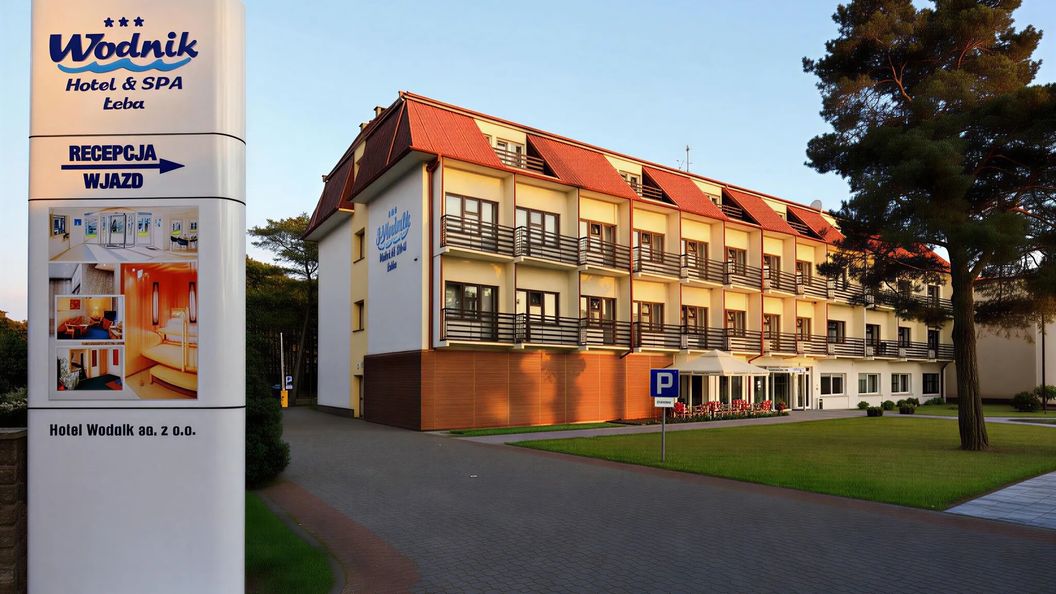 Hotel "WODNIK" usytuowany jest w najbardziej urokliwej części Łeby, w dzielnicy turystyczno-wypoczynkowej otoczony kompleksem leśnym tuż przy plaży i w niewielkiej odległości od jezior Łebsko i Sarbsko. Stanowi dogodną bazę wypadową do zwiedzania Łeby, Słowińskiego Parku Narodowego i malowniczej okolicy. Hotel dysponuje 229 miejscami noclegowymi w apartamentach dwuosobowych i pokojach 1, 2-osobowych oraz 2-osobowych z dostawką, z pełnym węzłem sanitarnym. Wszystkie pokoje wyposażone są w telefon, telewizor, radio, lodówkę.