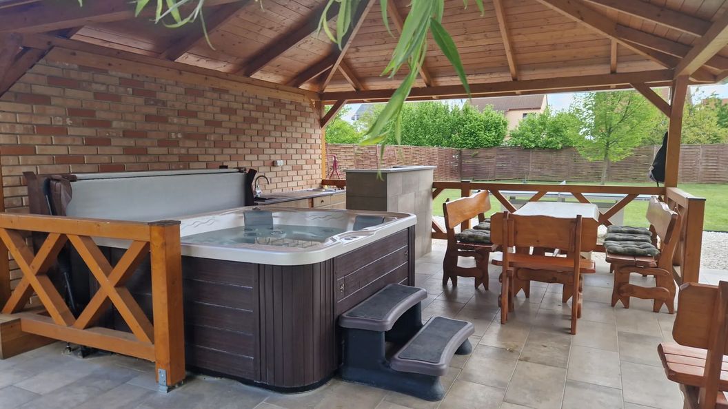 maj 2023Alapvetően minden rendben volt. A kert, a jakuzzi egyszerűen szuper. A felszereltség nagyon jó, minden volt, ami kellett. A szobák tágasak.