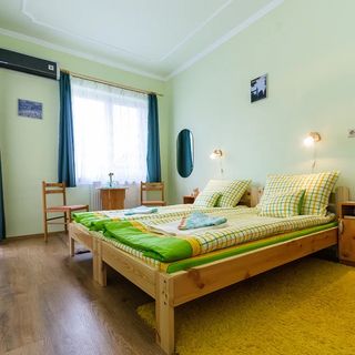 sierpień 2021Tiszta szobák, rendezett környezet. Nagy közösségi tér, jól felszerelt konyha. Külön fürdőszoba tartozik minden szobához, ilyen szállásdíjért ez nem igazán jellemző. Nagy az udvar, az ott parkoló autók jól elférnek.