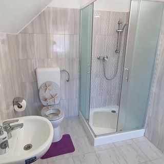 Saját fürdőszobával van meghirdetve a szoba, közben a szobán kívül van a többi szoba lakóival együtt használva. Ez így elég megtévesztő a hirdetésben, mert ezt így már nem saját fürdőszobának hívják. A szemetesben az előző vendég szemete volt.