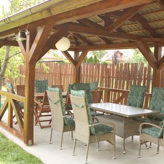 lipiec 2023A kinyitható kanapéra helyeztek egy matracvédőt, így kényelmesebb volt az ágy. A szobában van egy minikonyha. A szobához tartozik egy asztal párnázott székekkel, a teraszon. A gyerekek számára van trambulin, hinta, homokozó. Van légkondicionáló a szobában.