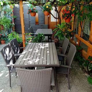 Pensjonat rodzinny znajduje się w zielonym pasie Egeru, głównie dla rodzin z dwoma oddzielnymi mieszkaniami. Jednopokojowy apartament na dziedzińcu dla 2 + 2 osób i apartament w ogrodzie dla 2 + 4 osób. Ogród jest kojący, idealny na relaks. Udogodnienia takie jak ogród z grillem, tenis stołowy, gry dla dzieci. Zabytkowe centrum miasta znajduje się zaledwie 15 minut spacerem od hotelu, plaża, ogród dla dzieci, basen znajdują się 10 minut spacerem od hotelu, a dworzec kolejowy znajduje się 5 minut spacerem od hotelu.