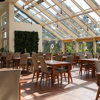 Do dyspozycji naszych Gości pozostawiamy klimatyzowaną salę restauracyjną połączoną z ogrodem zimowym, który przyciąga uwagę niezwykłym wystrojem i dobrze nasłonecznionym wnętrzem.