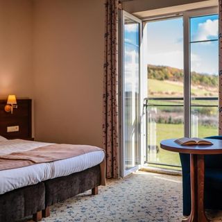 Oddajemy do Państwa dyspozycji 67 komfortowo wyposażonych pokoi i apartamentów, wyposażoną w najnowsze rozwiązania audio-wizualne część konferencyjną o powierzchni ponad 550 metrów kwadratowych, restaurację serwującą dania kuchni polskiej oraz międzynarodowej w autorskim wydaniu, bar z ofertą ponad 40 rodzajów koktajli i drinków oraz wyjątkowe centrum Spa & Wellness, oferujące gamę zabiegów kosmetycznych i pielęgnacyjnych na bazie luksusowych kosmetyków firmy Janssen, a także unikatowe w tej okolicy kąpiele i zabiegi na bazie siarki.