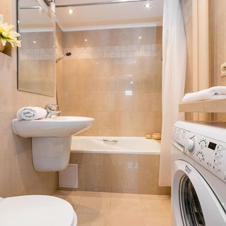 Łazienka: wanna, wc, pralka, suszarka, żelazko, deska do prasowania