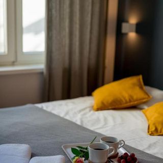 Bardzo mały pokój. Od wejścia do łóżka jeden krok, do szafki TV kolejny jeden krok... W dodatku łóżko zarwane z jednej strony. Za oknem pociągi, przejeżdżające ok 2 metry od budynku, co 10 minut. Akurat było zimno, więc okno zamknięte, ale latem to byłby koszmar!