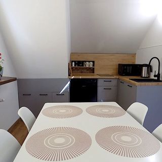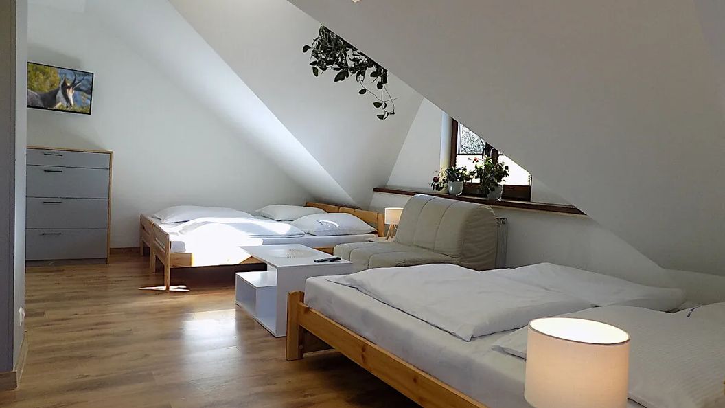 Obiekt oferuje zróżnicowane opcje zakwaterowania. Do dyspozycji gości są pokoje 2-osobowe oraz 4-osobowe, zlokalizowane na piętrze i poddaszu. Część z nich wyposażona jest we własną kuchnię. Ofertę uzupełnia przestronny, 7-osobowy apartament składający się z trzech pomieszczeń sypialnianych, ze wspólną łazienką i aneksem kuchennym.