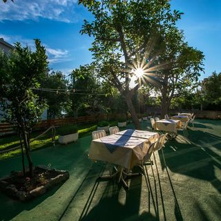 lipiec 2017Auf der Hauptstraße Rijeka - Split unter dem Velebit-Gebirge liegt das Dorf Starigrad. Einige Schritte vom Zentrum liegt Pansion Ivan. Trotz der frühen Ankunft waren Besitzers Ivan und Marijana freundlich und bieten uns Kaffee, hausgemachte Kirschenlikör und Feigenschnaps. Wir befinden uns im Schatten einer Walnuss auf der Pensionen Terrasse, trinken Kaffe, zwei Mädchen aus einer benachbarten Wohnung könnte sich zwischen zwei jungen Olivenbäumen in einer Hängematte schwingen und auf die große Terrasse glücklich fangen. Das Meer hat schöne Blaue Farbe und Ivan hat gesagt, dass die Reflexion des Himmels ist. Vorbei vom kleinen Hafen direkt am Strand unter den bunten Ständen mit Magneten, Taschen und alle möglichen Dingen, können wir nach turmbau Većka kula gehen. Es ist schön hier. Möbel im Zimmer waren neu, auf dem Bett wartet uns frische Handtücher, durch Fenster können wir das See schauen. Das See ist in der Nähe und wir brauchen weniger als Minute bis Strand. Wir nehmen uns Platz am Sandstrand im Schatten der wilden Pflaumen. Es ist zu heiß für das Buch, so gehen wir um ein kaltes Bier im Lokal, am Strand, unter dem Pansion. Zum Abendessen haben wir Fisch bestellen. Wir haben am ersten Gemüsesuppe bekommen, dann sehr schmackvoll Fisch mit Tintenfisch, Saisonsalate, eine riesige Portion Pommes Frites und natürlich ein Feigenschnaps. Der ganze Urlaub aßen wir wie Könige. Beim Frühstück hatten wir auch Orangensaft und türkischen Kaffee bekommen. Nach Abendessen, nachdem wir Suppe und gemischtes gegrilltes Fleisch, Thunfisch, gefüllten Paprika, Fisch, etc., haben wir zum Nachtisch auch Weintrauben, Wassermelone, Eis, Pfannkuchen und so weiter, bekommen. Mit seiner günstigen Lage, fast direkt am Strand, gutes Essen und warmes Meer, der Charme des Pansion Ivan ist im Gastfreundschaft und Gemütlichkeit ihrer jeweiligen Eigentümer. Marijana und Ivan sind einfach, fröhlich, kommunikativ und Witzig. Obwohl wir Turisten für eine Woche waren, fühlen wir, dass wir Freunde geworden sind. Wir hatten einen tollen Urlaub. Wir besuchten den Nationalpark Paklenica von oben nach unten (dank Ivan Verkehrs Velebit), wir fahren uns mit Jet-Ski, besuchen Fischerfest im Zentrum, verbrachte einige Abend auf der Terrasse bei Spritzer und chatten, wir haben auch eine schöne, kurze Reise mit Ivan am Seiner Boot, wir haben auch Meeresorgel im Zadar gehört und viel gutes Essen. Auf jeden Fall gehen wir wieder nach Pension Ivan. 10/10