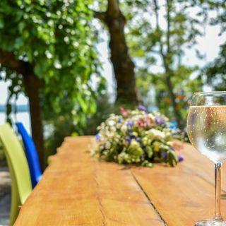maj 20251 éjszakára száltunk meg, biciklivel érkeztünk kimerülve, éhesen kora este. Félpanziós lehetőség nem volt foglaláskor, fel volt tüntetve, h van saját étterme a szállásnak. Este fél nyolckor elhajtott a pincér (agy a tulaj) mondván, hogy nem tud több rendelést felvenni aznap, holott voltak üres asztalok. Megkérdeztük, hogy egy leves erejéig sem? Közölte, hogy nem. Le se szarták, hogy ott szálltunk meg és nem külsős vendégek vagyunk. A recepció semmilyen éttermet nem tudott ajánlani, előbb találtam magam a telefonomon, mint az ott dolgozók. Végül 70 km nehéz terepen való bringázás után mászhattunk fel a faluba, hogy valamit vacsorázni tudjunk. Ez azért több mint kellemetlen. A szobán az újabbik épületben a földszinten volt, szép kis szoba, de érezni ( és látni is) lehetett, hogy vizesedik az épület. Amúgy gyönyörű helyen van, közvetlen vízparton, ápolt park, madárcsicsergés, veszi körül.