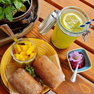 Obiekt nie oferuje stałego wyżywienia, jednak zapewnia warunki do samodzielnego przygotowywania posiłków na świeżym powietrzu. Dostępne jest miejsce do gotowania w kociołku, grill oraz kominek. Na życzenie serwowane są dania kuchni regionalnej oraz posiłki uwzględniające specjalne diety, w tym bezglutenową, wegetariańską czy bezlaktozową.