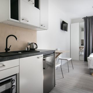 Pokoje typu Studio w Soda Apartments znajdują się w oficynie - wejście w podwórzu. 8 samodzielnych pokoi znajduje się na 2 piętrach, po 4 pokoje na 1 piętrze. Pokoje wynajmowane są na min. 2 doby.