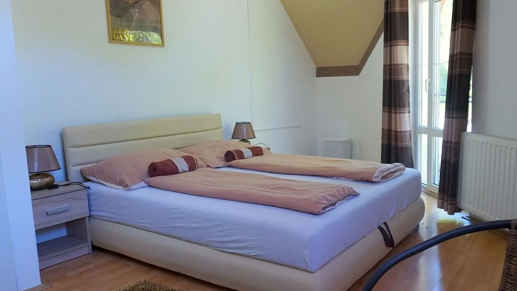A szobánk rendezett és tiszta valamint a fürdőszobára is a tisztaság jellemző. Kerthelyiség hangulatos, hegyre néző. A szállás a Zsólyomkai pincesor szomszédságában található.