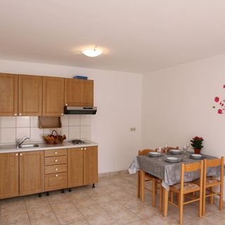 Da,bilo je super,plaža v bližini,primerna za leto starega otroka. Zelo fajn je velik, prostoren balkon s čudovitim razgledom na morje. Gostinci zelo prijazni. - Ker smo prišli pred 14 uro, smo lahko brez problema prevzeli apartma prej,vendar tudi kar hitro ugotovili, da niso imeli časa apartmaja primerno počistit, saj je otrok, ki je po štirih plazil po tleh bil v trenutku tako umazan, da sem ga morala umit in tudi sama apartma počistit, da je bil primeren za igro otroka na tleh. Napa v kuhinji je samo za okras - pri kuhanju gre vsa para v prostor in se cedi po steni, tako da veliko kuhanja ne bi priporočala.
