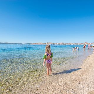 A szállás.hu-n a párt 400m-re volt feltüntetve. A valóságban 1200 M, sètával ,a Brodarica beach, cuccokkal a partra nèha hosszúnak tünt. A strand nagyon jó volt, tiszta, rendezett,autóval a parkolás nem igazán lehetsèges, ezèrt gyalog mentünk minden nap a partra. Kisebb gyerekkel, azèrt hosszú lehet. A másik strand City beach 2200 m-re van Az nem volt annyira jó, ott van bőven parkoló hely, vannak árusok, több lehetősèg enni.