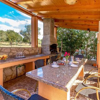 The apartment is directly next to the sea. Only about 20 steps and you can swim in crystal clear Adriatic waters. We were greeted by the host and shown around. The apartment was super clean. The kitchen has everything you need. The bathrooms are a bit small but absolutely sufficient. The owner did our laundry (because the washing machine was temporarily out of order) without any extra fees. With the apartment comes a huge private terrace with outdoor shower, which is especially nice after a swim or to cool down. There is also a massive shared barbecue area with a sink, fridge etc. Every bedroom and the kitchen has a separate AC unit. The owners have a large garden with tomatos, courgettes, cucumber, grapes, limes, kiwis, figs and more, which they are happy to share with you. Overall the holiday was fantastic and I can recommend this apartment to anyone who is looking for some well needed quite time. Large accomodation at premium location The apartment is directly next to the sea. Only about 20 steps and you can swim in crystal clear Adriatic waters. We were greeted by the host and shown around. The apartment was super clean. The kitchen has everything you need. The bathrooms are a bit small but absolutely sufficient. The owner did our laundry (because the washing machine was temporarily out of order) without any extra fees. With the apartment comes a huge private terrace with outdoor shower, which is especially nice after a swim or to cool down. There is also a massive shared barbecue area with a sink, fridge etc. Every bedroom and the kitchen has a separate AC unit. The owners have a large garden with tomatos, courgettes, cucumber, grapes, limes, kiwis, figs and more, which they are happy to share with you. Overall the holiday was fantastic and I can recommend this apartment to anyone who is looking for some well needed quite time.