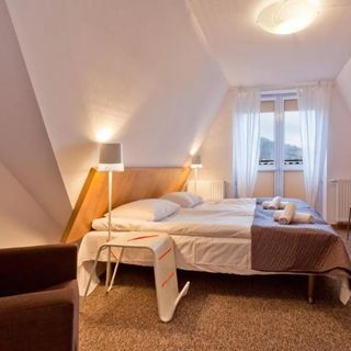 Oferujemy 12 pokoi 2, 3 oraz 4 osobowych w wysokim standardzie i eleganckiej aranżacji wnętrza. Pokoje wyposażone są w łazienkę (prysznic, dwie umywalki, ręczniki, suszarkę, mydło oraz szampon), łóżko małżeńskie oraz łóżko pojedyncze, sofę rozkładaną, stolik z krzesłami, TV sat, czajnik, filiżanki i kubki, a na powitanie: kawa, herbata, cukier, woda mineralna. Na terenie obiektu internet wi-fi. W naszym menu można znaleźć zarówno pyszne propozycje kuchni domowej jak i lekkie posiłki pozwalające zadbać o sylwetkę. Posiadamy ofertę dań dietetycznych sporządzonych przez wykwalifikowanych specjalistów od zdrowego żywienia.